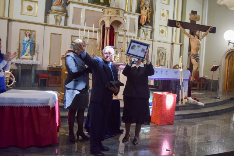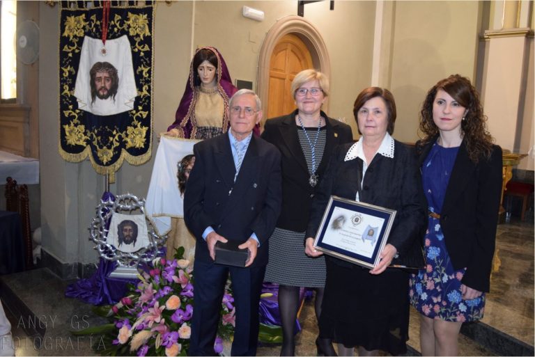 Este año, que celebramos 25 años portando a hombros a nuestra imagen titular, la Cofradía ha querido rendirle un merecido homenaje a dos personas muy entregadas con la Cofradía, "Pilar y Manolo", él ha sido las manos que han acariciado cada Martes Santo la cara ensangrentada de Nuestro Padre Jesús de La Caída y ella siempre entre agujas e hilos, poniendo más guapa si cabe a nuestra Verónica para que saliera perfecta.