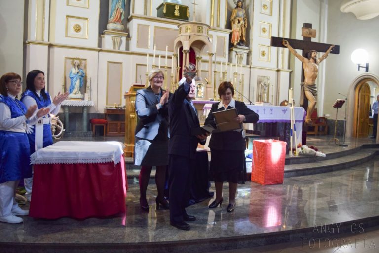Al término de esta, se realizó el acto de imposición de medallas a los nuevos miembros de la Cofradía. Además, como viene siendo habitual, se realizó un pequeño homenaje a las costaleras veteranas que cumplen 10 años cargando el trono titular.